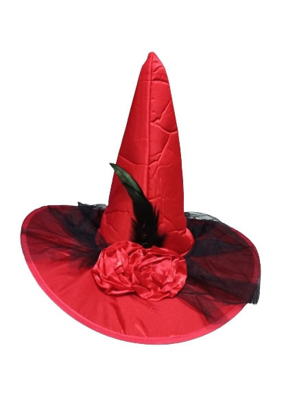 Piros tüllös felnőtt boszorkánykalap - Halloween - ÚJ