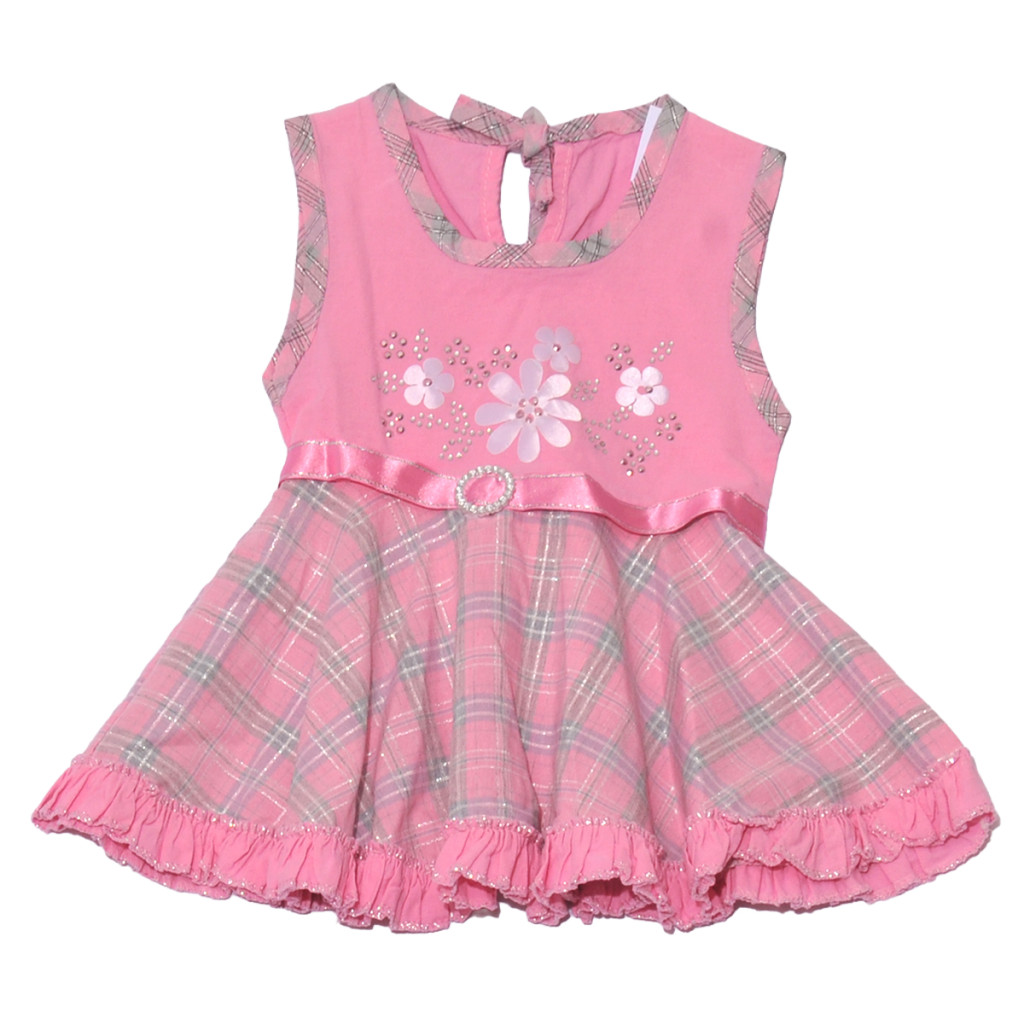 Rózsaszín kockás, virágmintás fodros ruha (98)