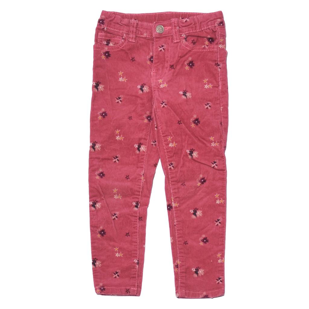 Rózsaszín, virágmintás kordnadrág (104)