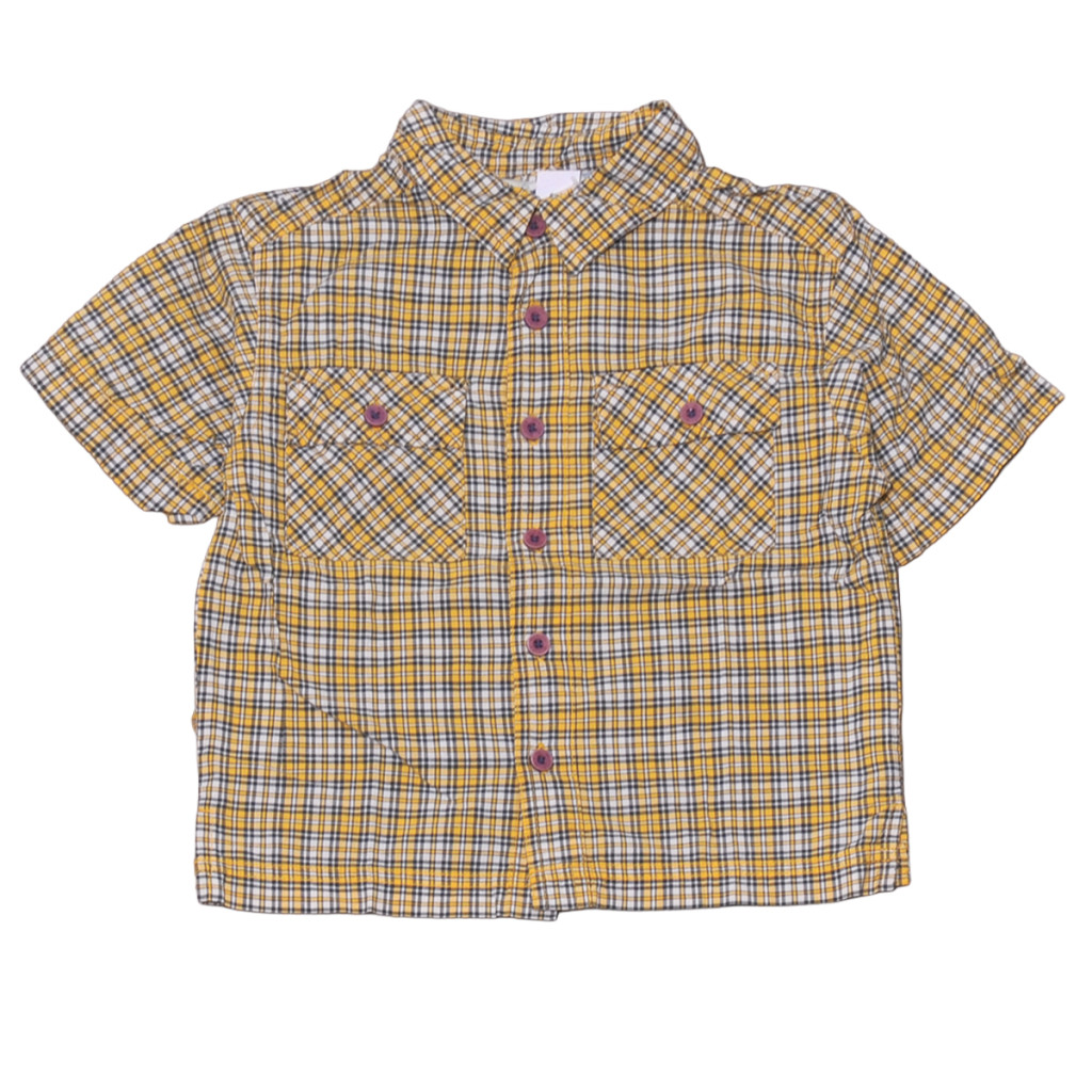 Sárga-kék kockás rövid ujjú ing (98-104)