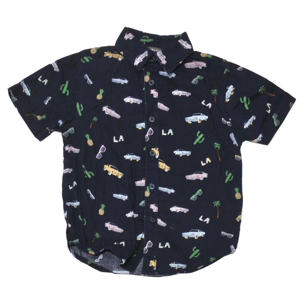 Sötétkék, mintás rövid ujjú ing (86-92)