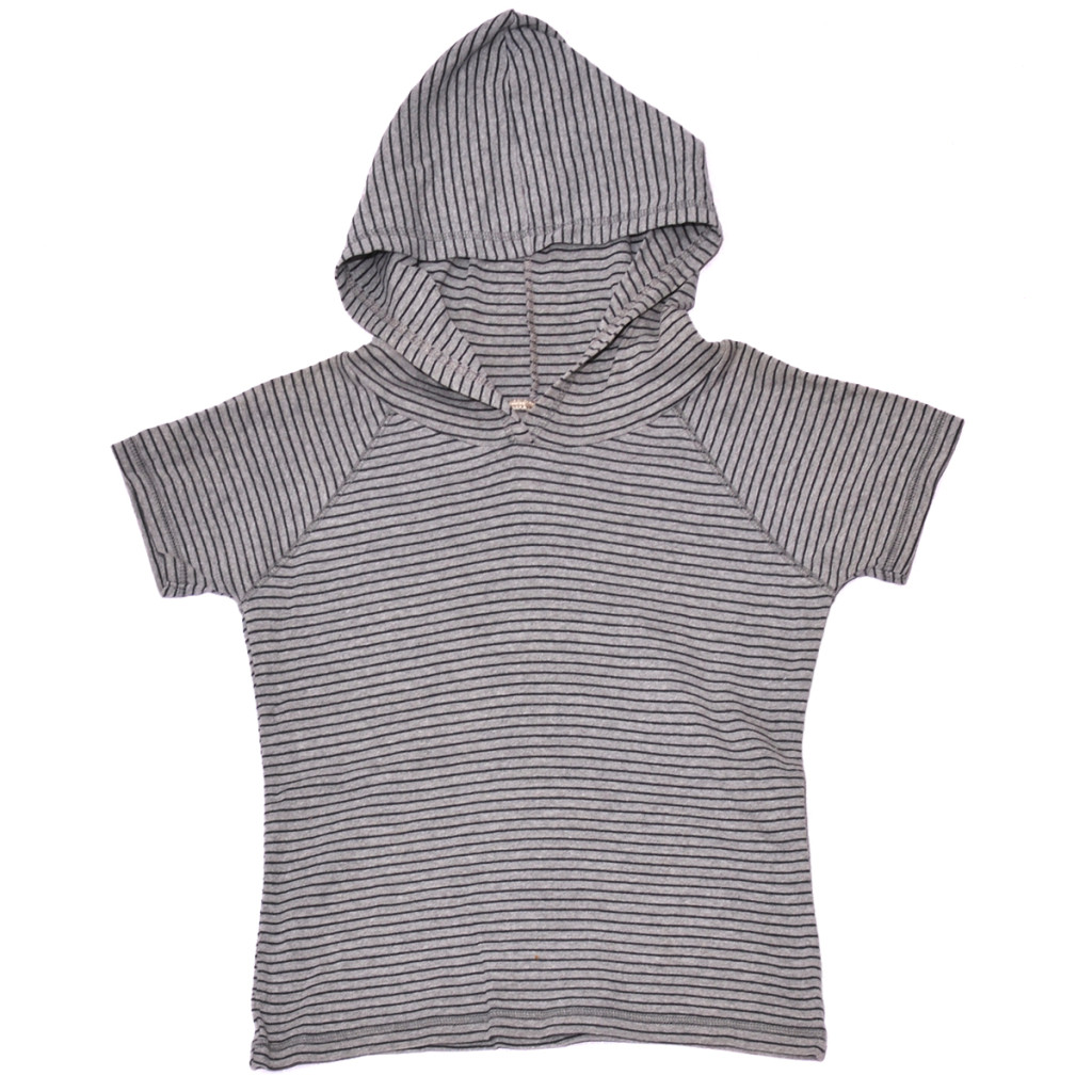 Szürke-kék csíkos kapucnis póló (134-140*)