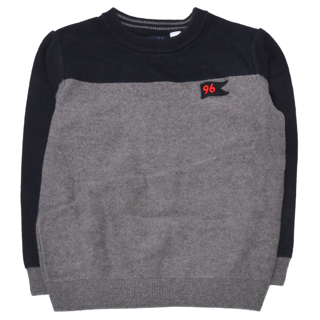 Szürke, kék pulóver (128)