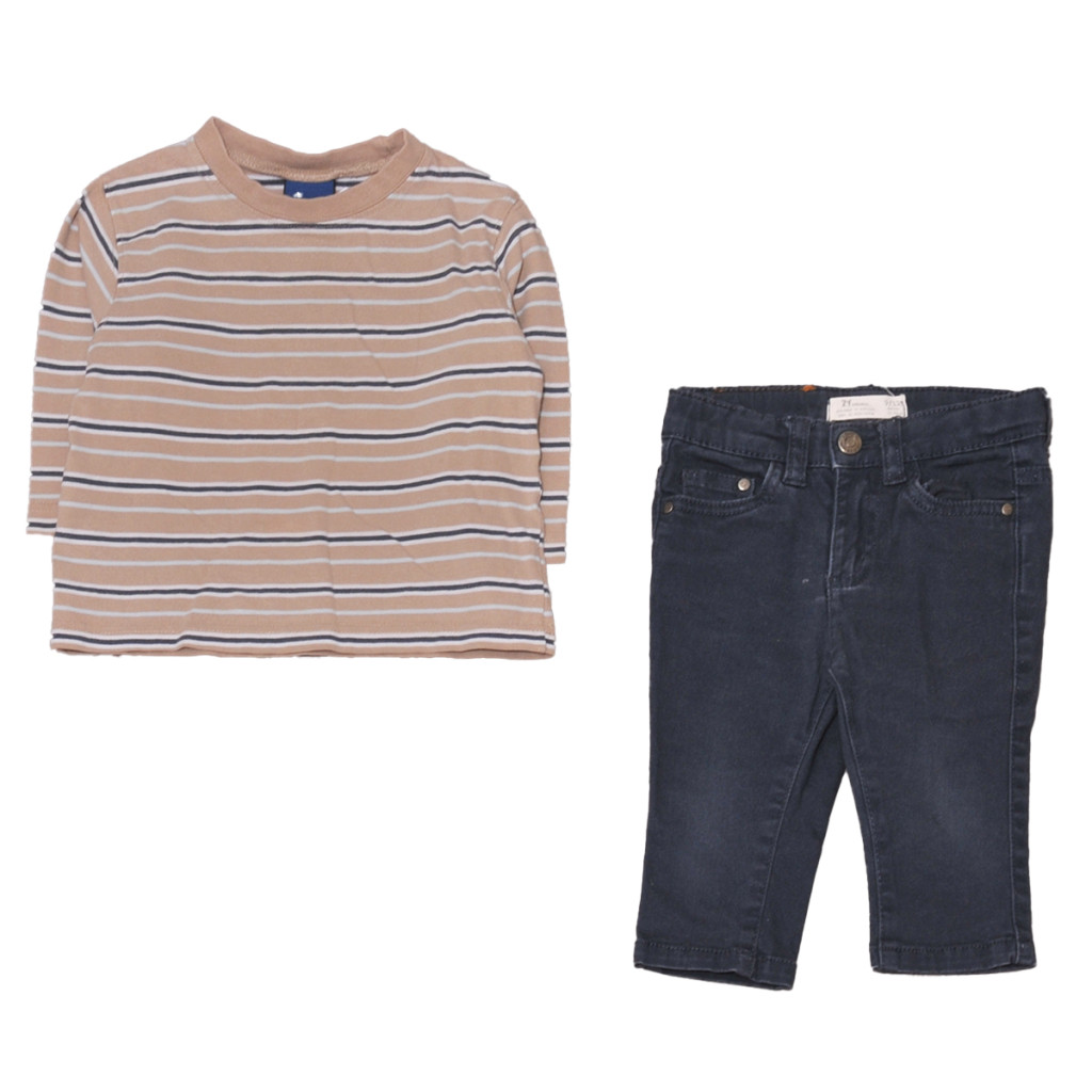 Zara / Cherokee - Barnacsíkos, kék ruhaszett ( 74-80)